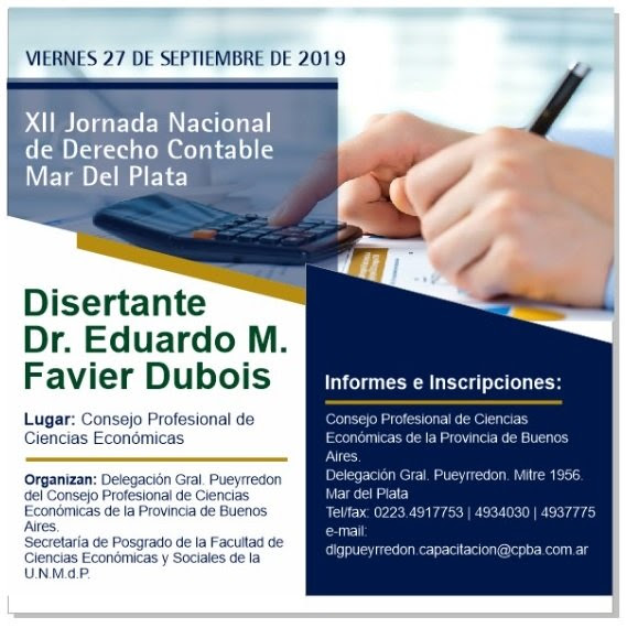 La Delegación Gral. Pueyrredon y la Secretaría de Posgrado de la Facultad de Ciencias Económicas y Sociales de la Universidad Nacional de Mar del Plata informan que se encuentra abierta la inscripción a la XII Jornada Nacional de Derecho Contable, auspiciada por el Instituto Autónomo de Derecho Contable (IADECO).