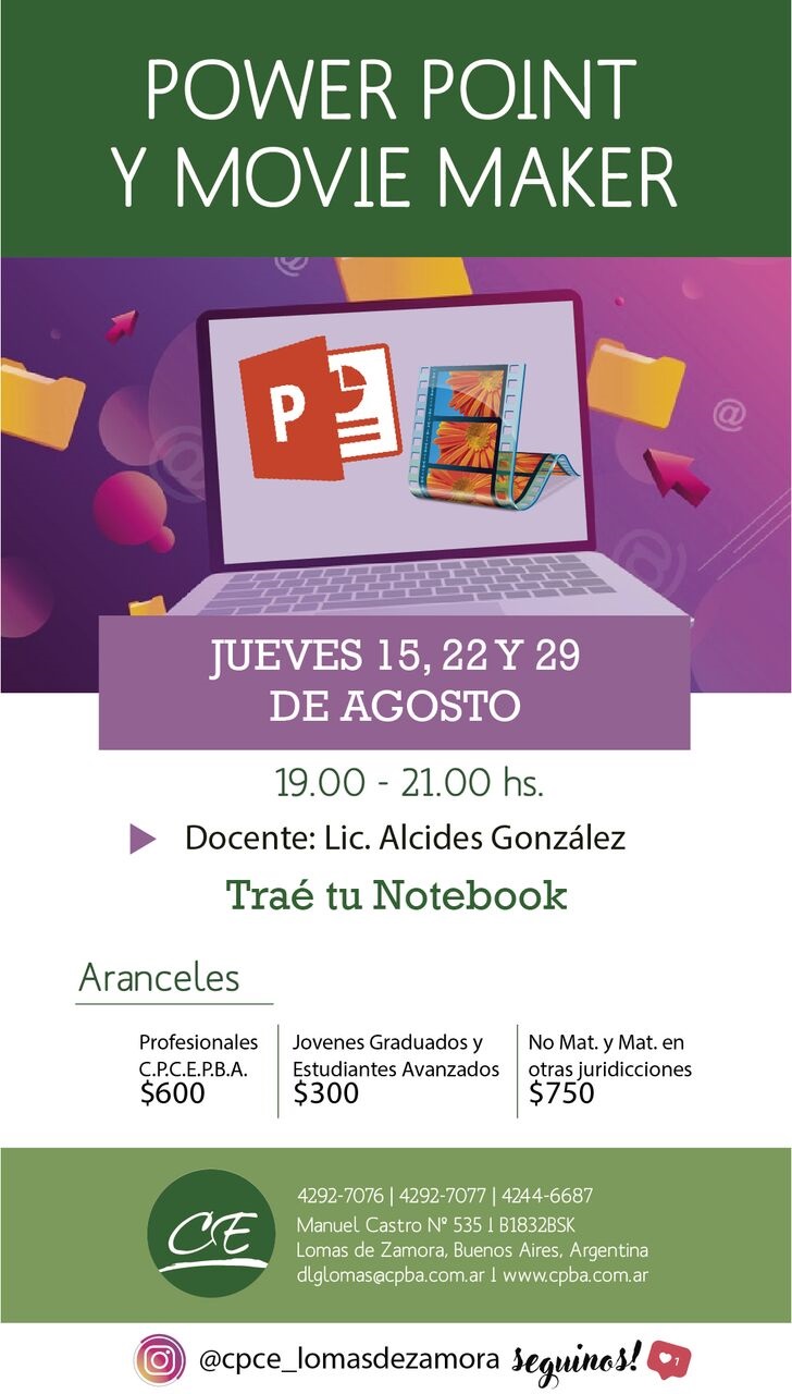 Para mayor información e inscripciones comunicarse a los teléfonos (011) 4292 7076, 4292 7077 y 4244 6687 o a través de correo electrónico a dlglomas@cpba.com.ar.