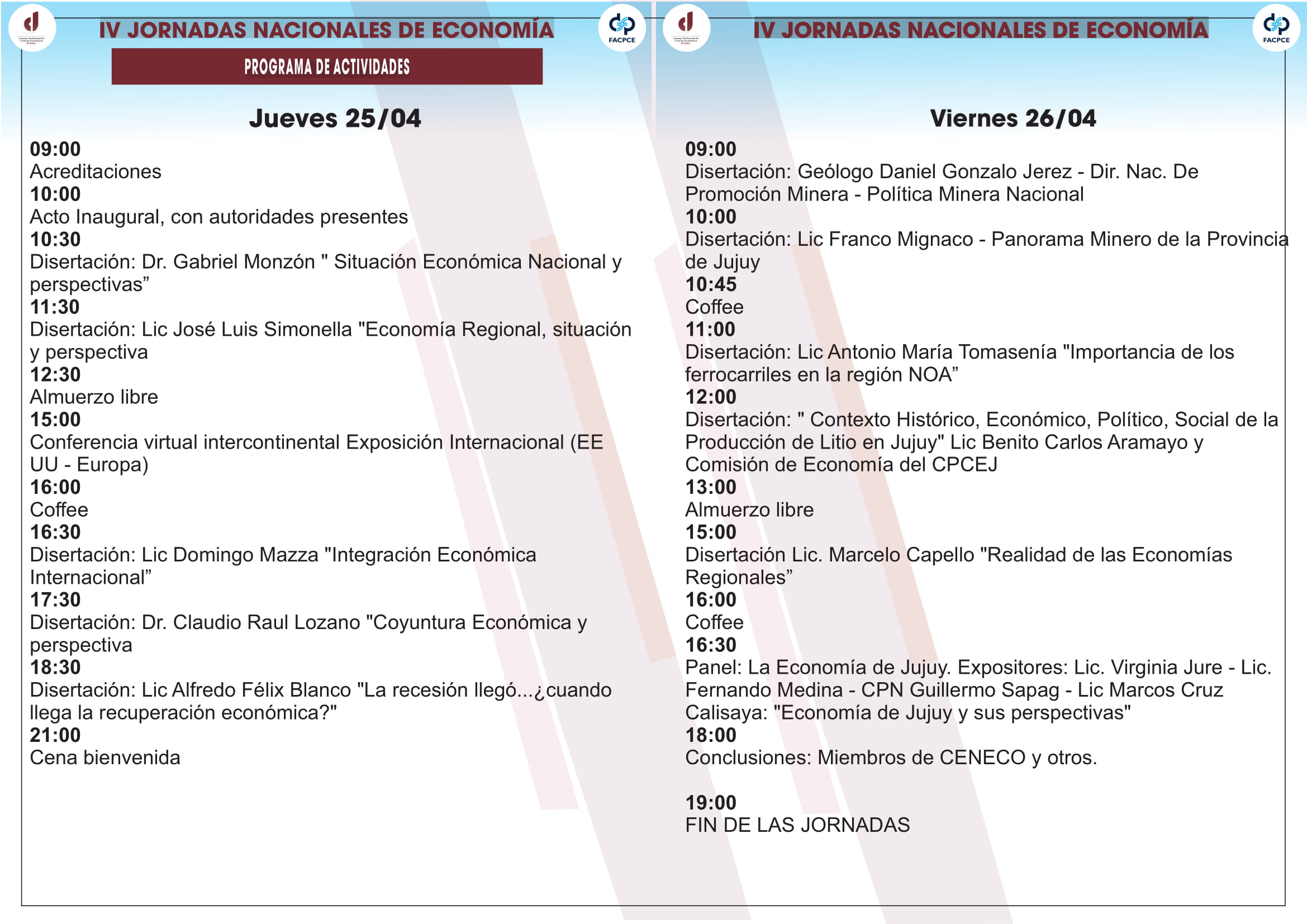 La FACPCE y el Consejo Profesional de Ciencias Económicas de Jujuy organizan las jornadas bajo el lema “Desarrollo regional, una mirada desde la economía política”.