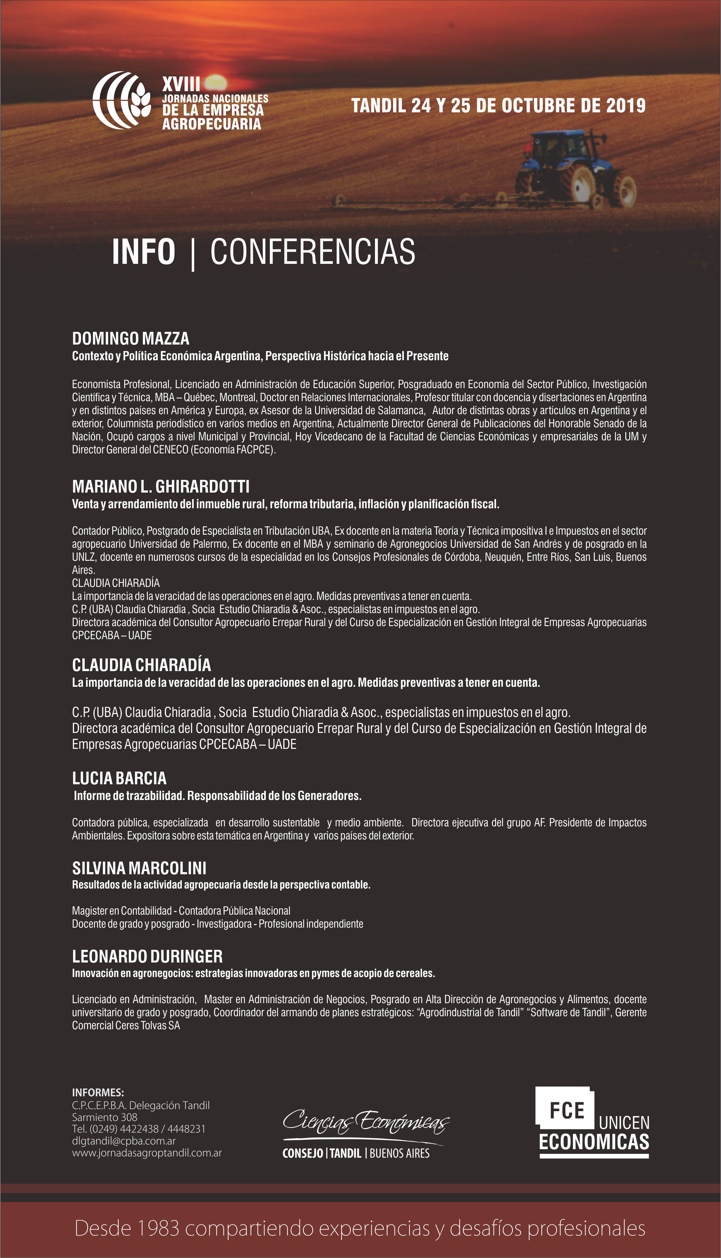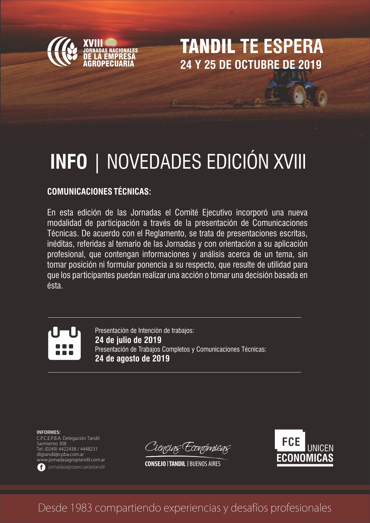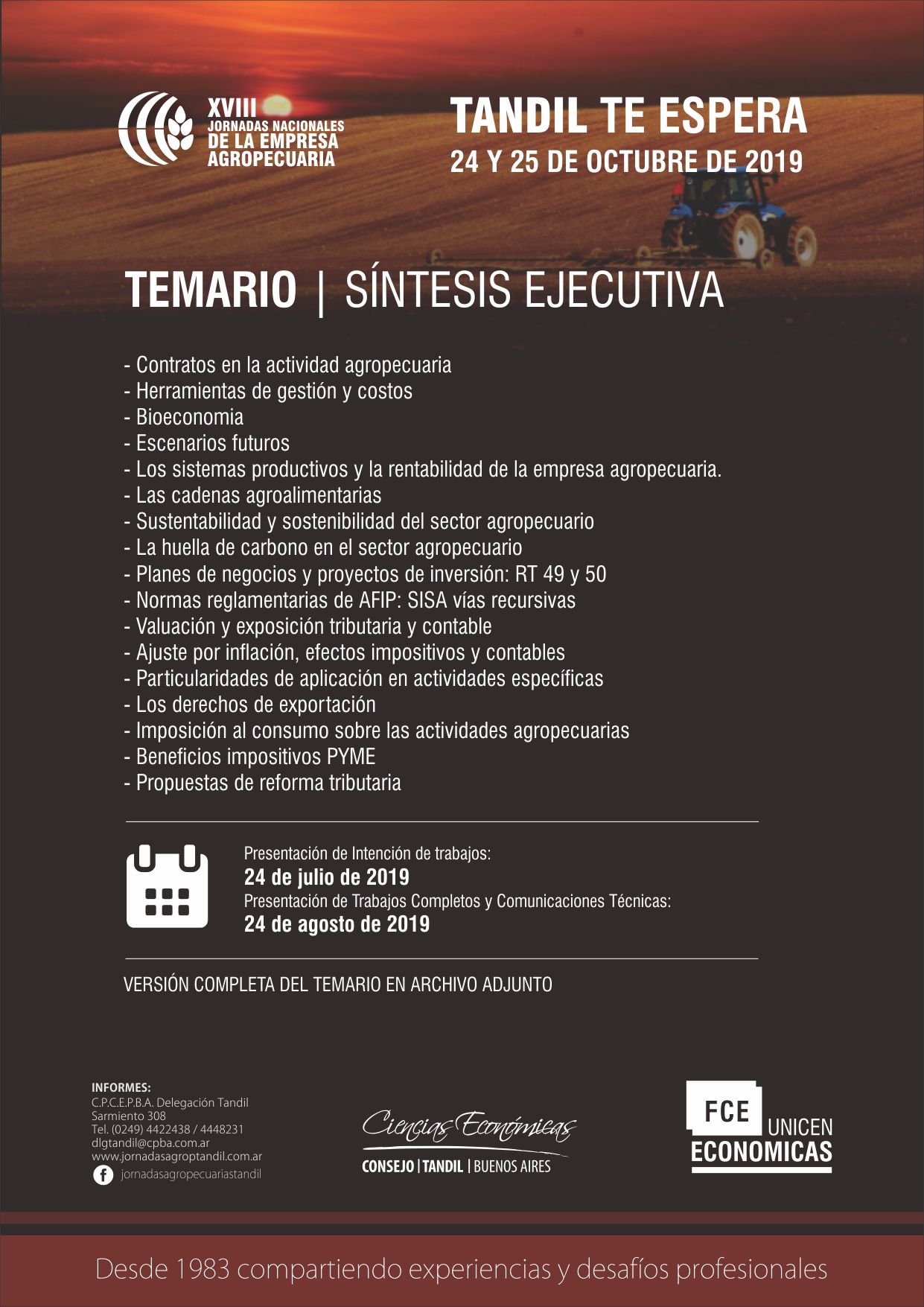 La Delegación Tandil invita a participar de las XVIII Jornadas Nacionales de la Empresa Agropecuaria que se desarrollarán el 24 y 25 de octubre en el Teatro del Fuerte, Independencia 360, Tandil.
