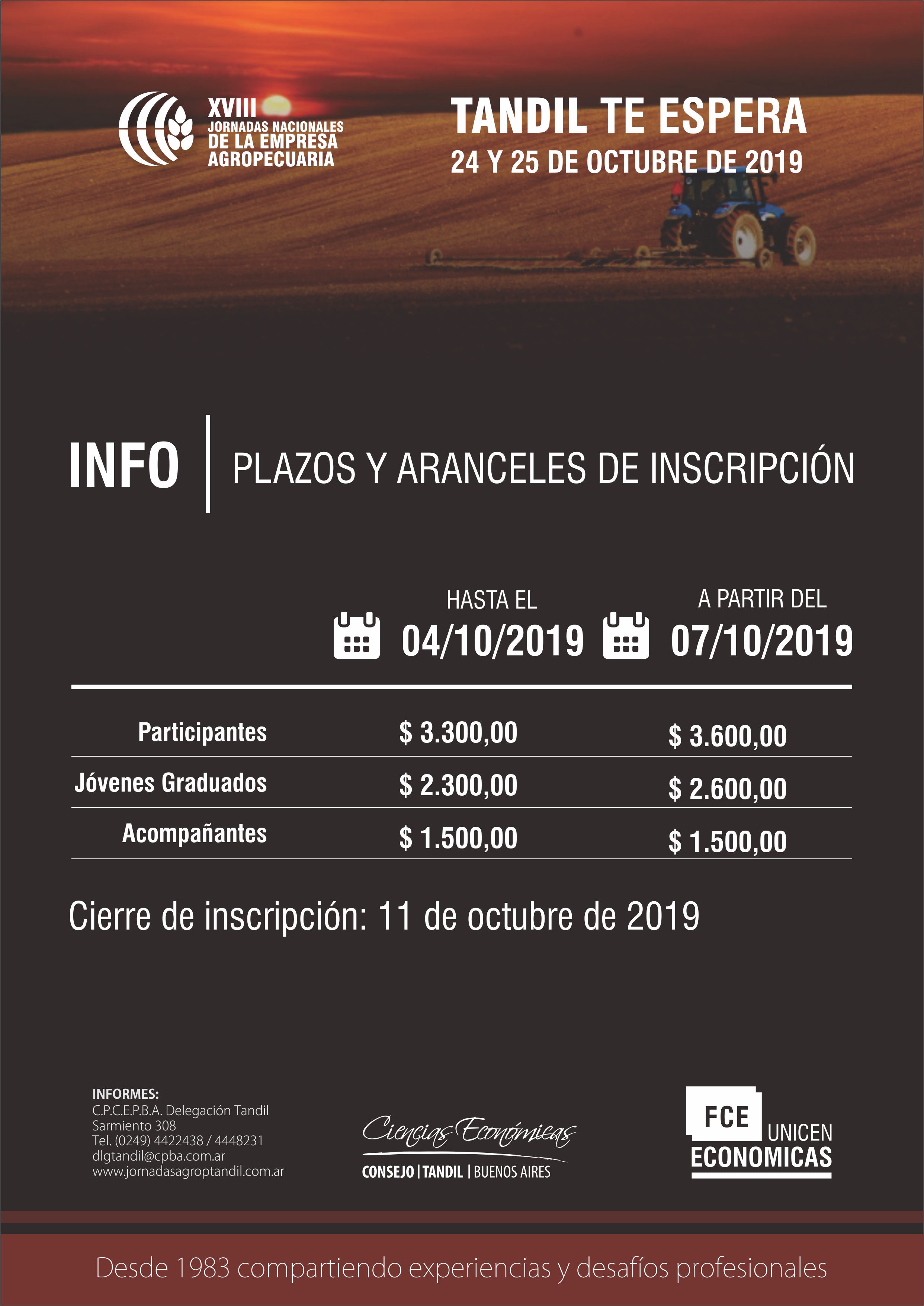 Plazos y aranceles para participar de la Jornada de la Empresa Agropecuaria
