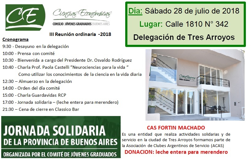 En el marco de este encuentro también se llevará a cabo una jornada solidaria por la tarde en la que, junto al CAS Fortín Machado, se hará una donación de leche entera para un merendero local.
