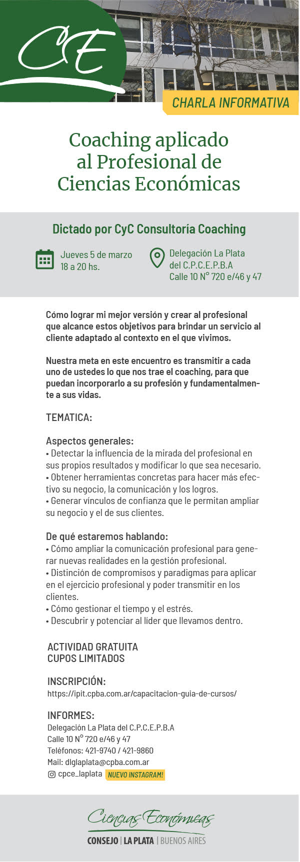 La Delegación La Plata invita a la charla que tendrá lugar el próximo 5 de marzo a las 18 hs.