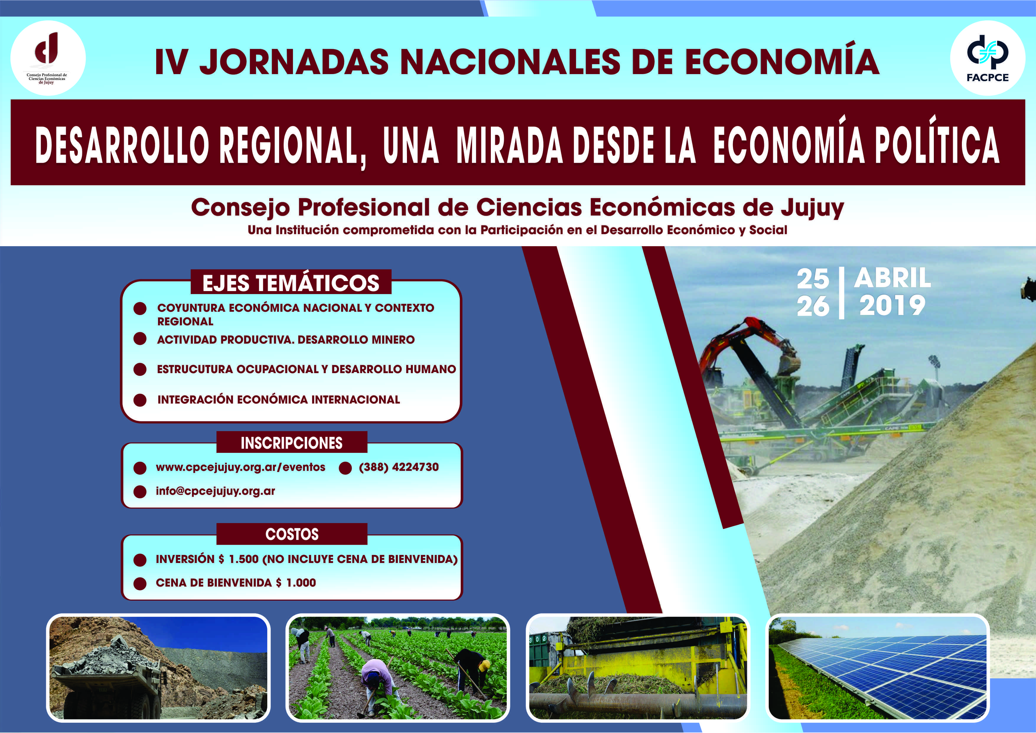 La FACPCE y el Consejo Profesional de Ciencias Económicas de Jujuy organizan las jornadas bajo el lema “Desarrollo regional, una mirada desde la economía política”.